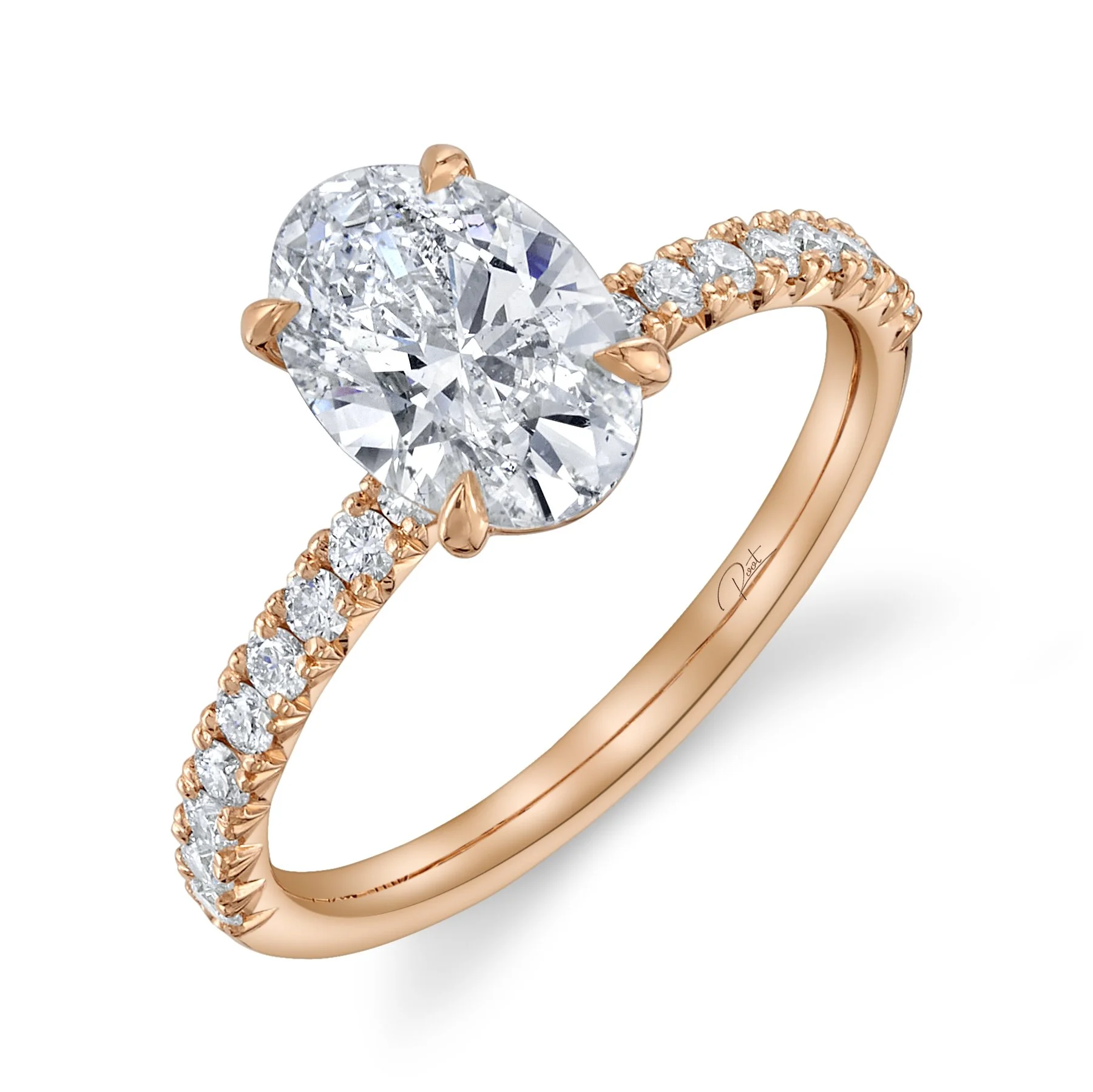 Custom oval diamond engagement ring.